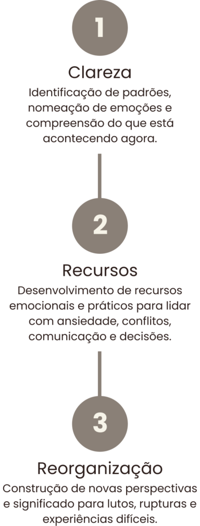 As mudanças acontecem quando você entende o que sente e tem recursos para agir de outro modo. Meu papel é acompanhar, nomear, organizar e oferecer sustentação clínica para esse processo.